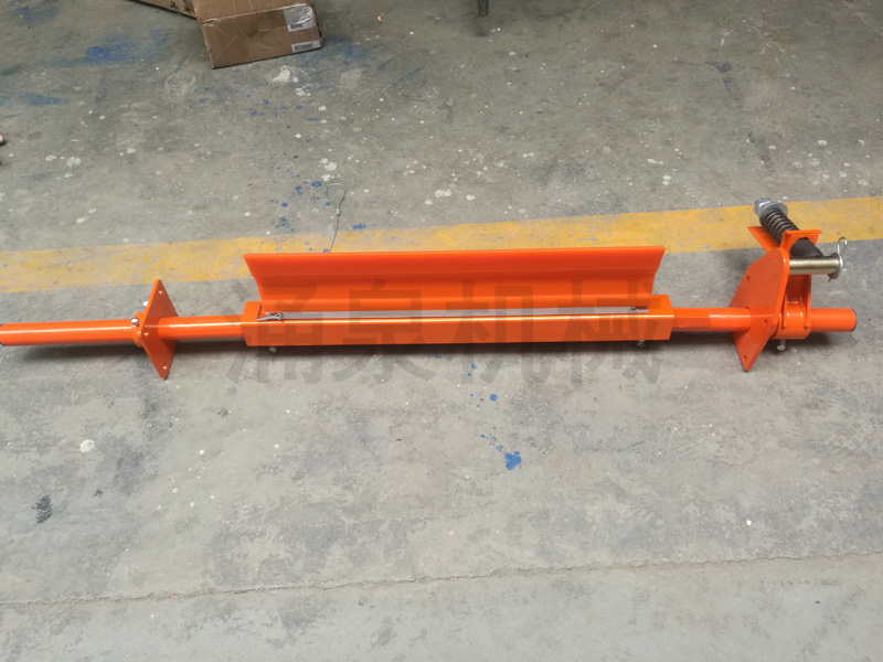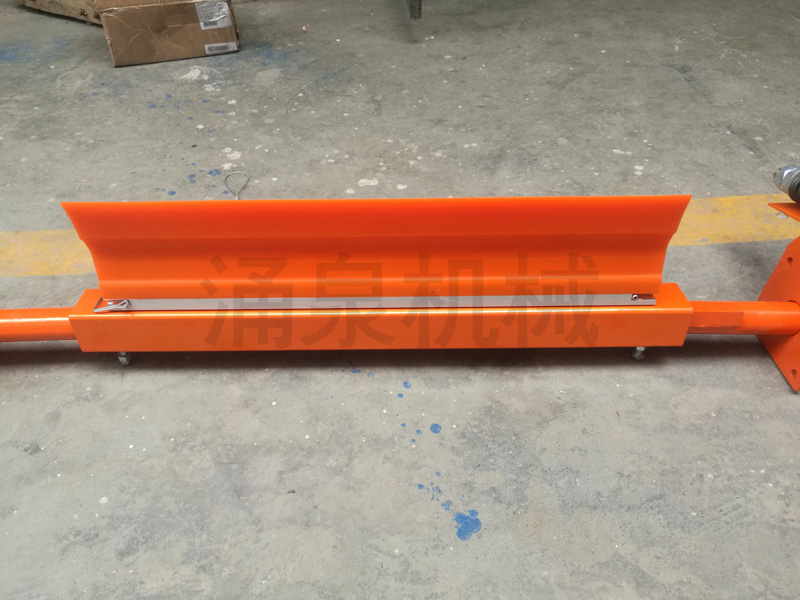 由此可見,清掃器在帶式輸送機上有著不可忽視的作用。我公司設計的 YQ-HPU 系列清掃器為頭道清掃器,安裝在帶式輸送機頭部滾筒,清掃器安裝寬度可根據現(xiàn)場情況任意伸縮。刀片材質為聚氨酯,具有耐磨損、抗腐蝕、不損傷皮帶、清掃干凈等優(yōu)點,其特別的張緊裝置,設計合理,使用方便,可以在不停機的情況下將刀片和皮帶分離,以利于清掃刀口上的雜物。該系列清掃器安裝簡單,維護方便,深受用戶青睞。