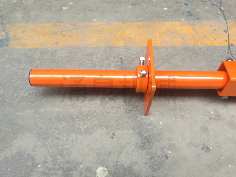 5. 安裝固定,使組裝好的清掃器軸心線與滾筒軸心線平行,刀頭緊貼帶面,然后調整使刀尖線的中心對準滾筒軸心線的中心,將橫梁底部的鎖緊螺釘擰緊并用螺母鎖定。通過調節(jié)螺母調整彈簧長度,給刀頭施加預緊力,然后用鎖緊螺母鎖緊。