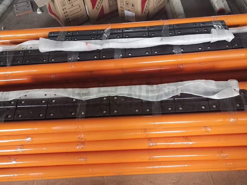 我公司設(shè)計(jì)的 HPU 系列清掃器為頭道清掃器,安裝在帶式輸送機(jī)頭部滾筒,清掃器安裝寬度可根據(jù)現(xiàn)場(chǎng)情況任意伸縮。刀片材質(zhì)為聚氨酯,具有耐磨損、抗腐蝕、不損傷皮帶、清掃干凈等優(yōu)點(diǎn),其特別的張緊裝置,設(shè)計(jì)合理,使用方便,可以在不停機(jī)的情況下將刀片和皮帶分離,以利于清掃刀口上的雜物。該系列清掃器安裝簡(jiǎn)單,維護(hù)方便,深受用戶(hù)青睞。