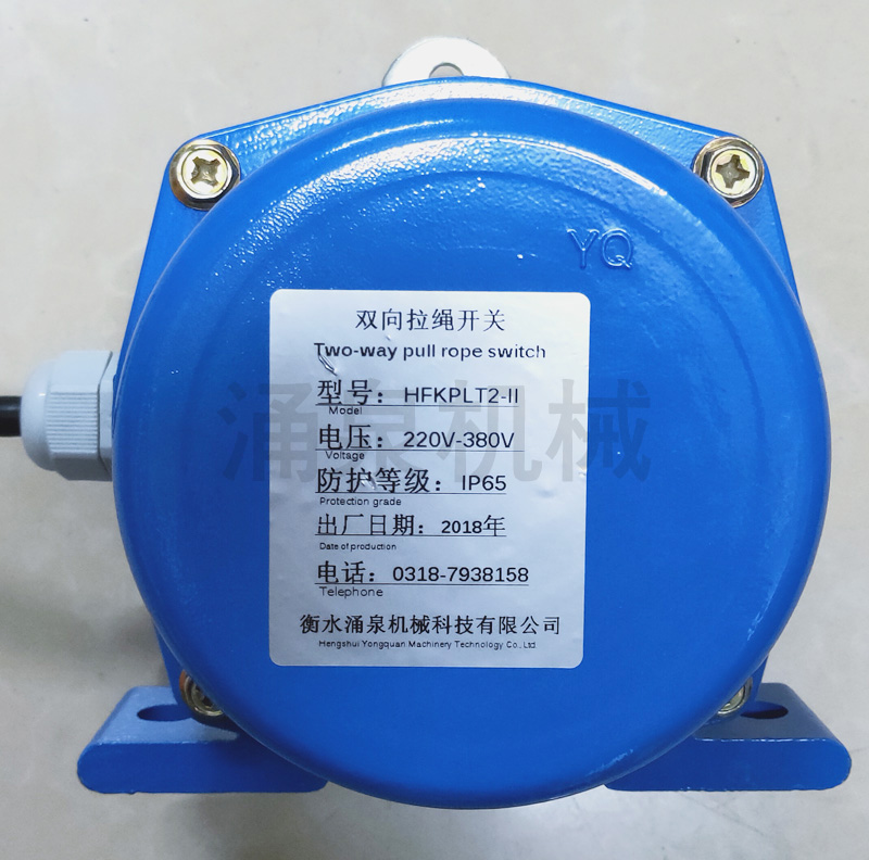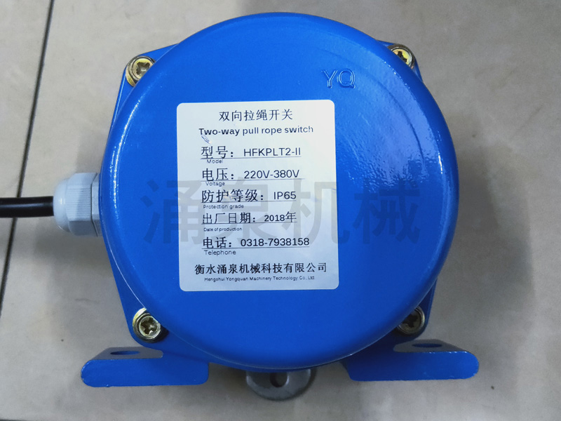 地址碼雙向拉繩開(kāi)關(guān)廣泛應(yīng)用于鋼鐵、水泥、電廠、礦山等具有帶式輸送機(jī)的廠礦,該產(chǎn)品安裝在膠帶輸送機(jī)兩側(cè),是用于膠帶輸送機(jī)緊急事故停機(jī)的一種保護(hù)開(kāi)關(guān),在開(kāi)關(guān)操作距離內(nèi)任何一點(diǎn)拉動(dòng)鋼絲繩,切斷運(yùn)行電路使全線停機(jī),實(shí)現(xiàn)對(duì)膠帶機(jī)及人身安全的保護(hù)。