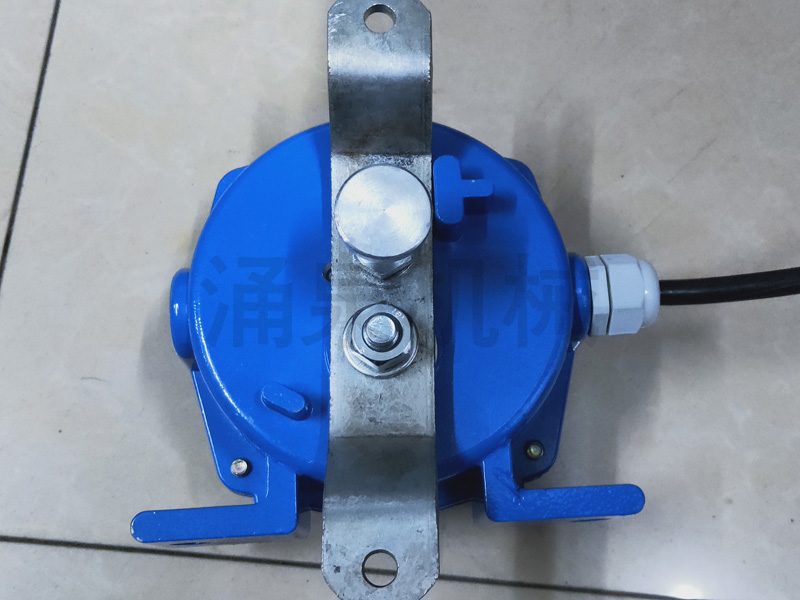 當(dāng)膠帶運(yùn)輸現(xiàn)場(chǎng)發(fā)生緊急事故時(shí),拉動(dòng)系在吊耳上的鋼絲繩,使機(jī)內(nèi)的滑塊與開(kāi)關(guān)作用,發(fā)出停機(jī)信號(hào)。松開(kāi)鋼絲繩按下復(fù)位杠后方可復(fù)位