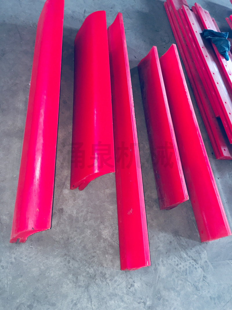 聚氨酯刮刀具有高耐磨、高耐老化、高耐溶劑的性能,聚氨酯刮刀并且使用壽命長。其邵氏硬度為:45A-90A。PU刮刀用于煤碳化工輸送帶上刮除粘附的灰粉和粉體材料,如煤炭輸送,化肥輸送,砂石輸送等。特點是超耐磨聚氨酯復合材料,是普通聚氨酯使用壽命的2倍。耐磨性能特好,使用壽命是一般橡膠塑料產(chǎn)品的5倍,可以根據(jù)客戶圖紙要求定做. PU刮刀均為澆注成形制作而成,各種類型的產(chǎn)品具有安裝,維修,調(diào)試方便,不損傷皮帶,不持物,不粘料,清掃效果良好,韌性好,直線度好,高耐磨特點應用:廣泛用于電力、礦山、煤炭、輸送機械、清掃等行業(yè)。